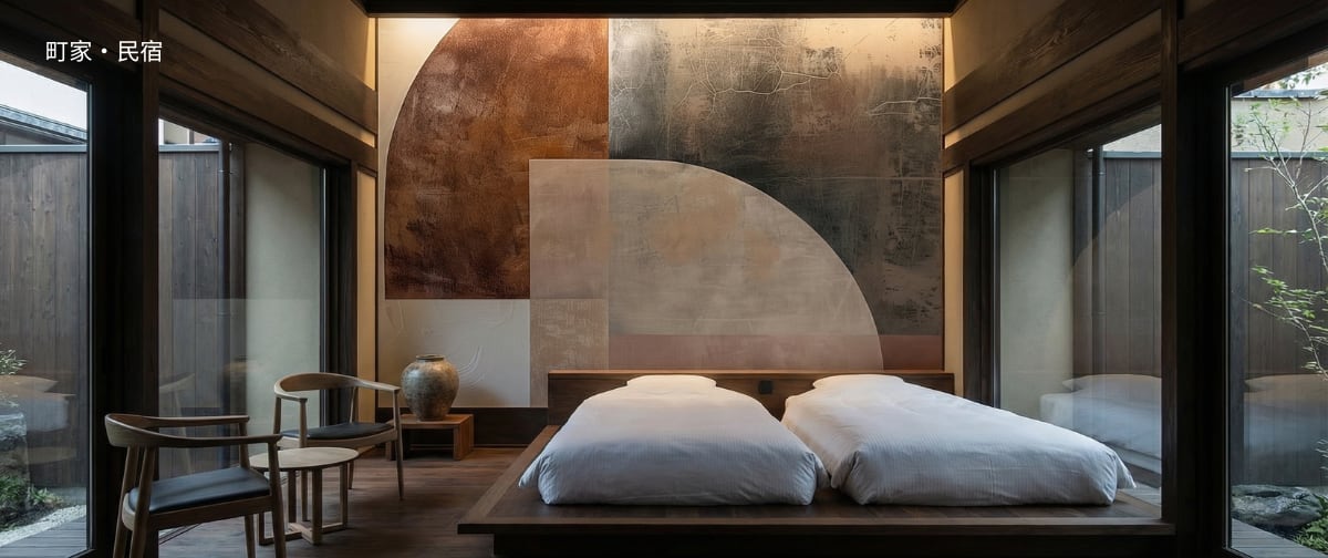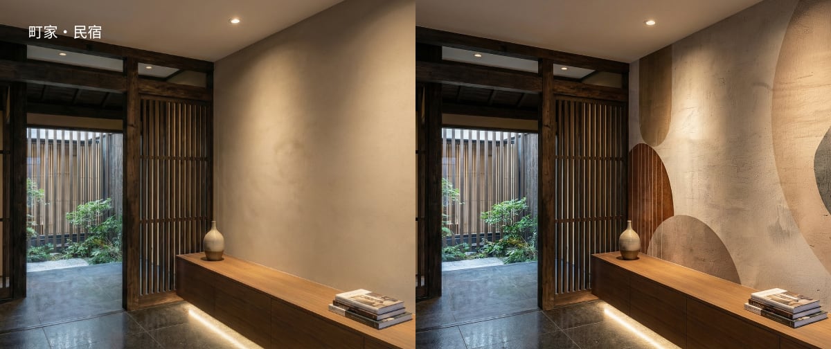 はい。町家や小規模民宿、ホテル、ヨガスタジオなど、限られた空間にも適したスケールでご提案しています。壁一面から部分的なアクセントまで、空間に合わせて調整可能です。