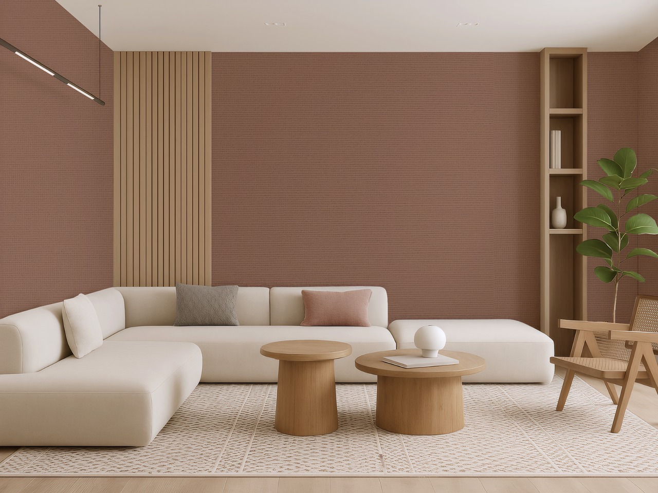 Umezomeは、熟れた果実や乾いた花びらのような、やわらかく温かみのある中間色が特徴のプレーンテクスチャ壁紙です。落ち着いたピーチトーンは、明るすぎず暗すぎず、空間に穏やかな彩りと自然なあたたかさを添えます。JapandiスタイルやWabi-Sabiのインテリアに自然に溶け込み、家具やアートの背景としても空間を引き立てます。くつろぎと余白を感じさせる、バランスの取れたニュートラルカラーの一枚です。