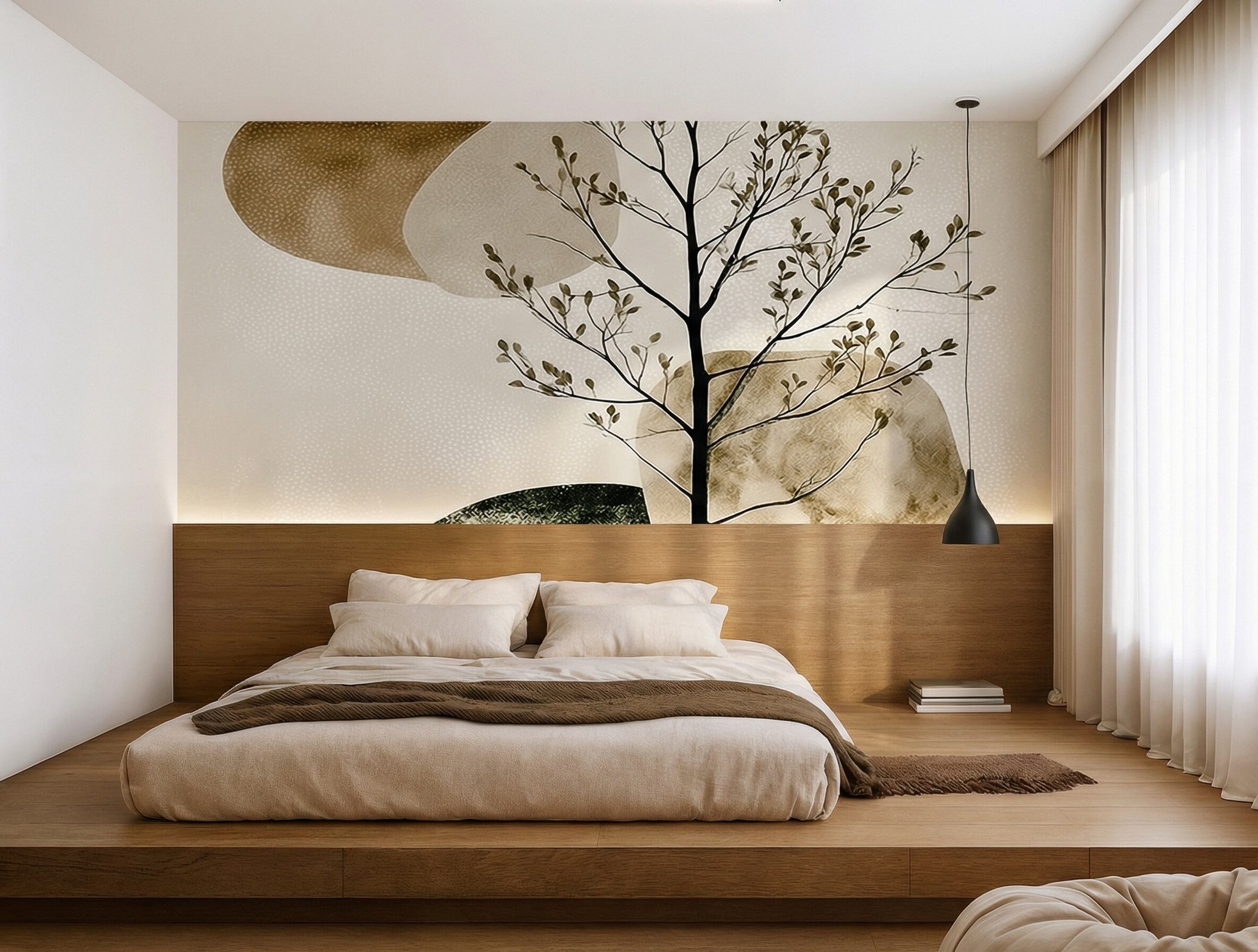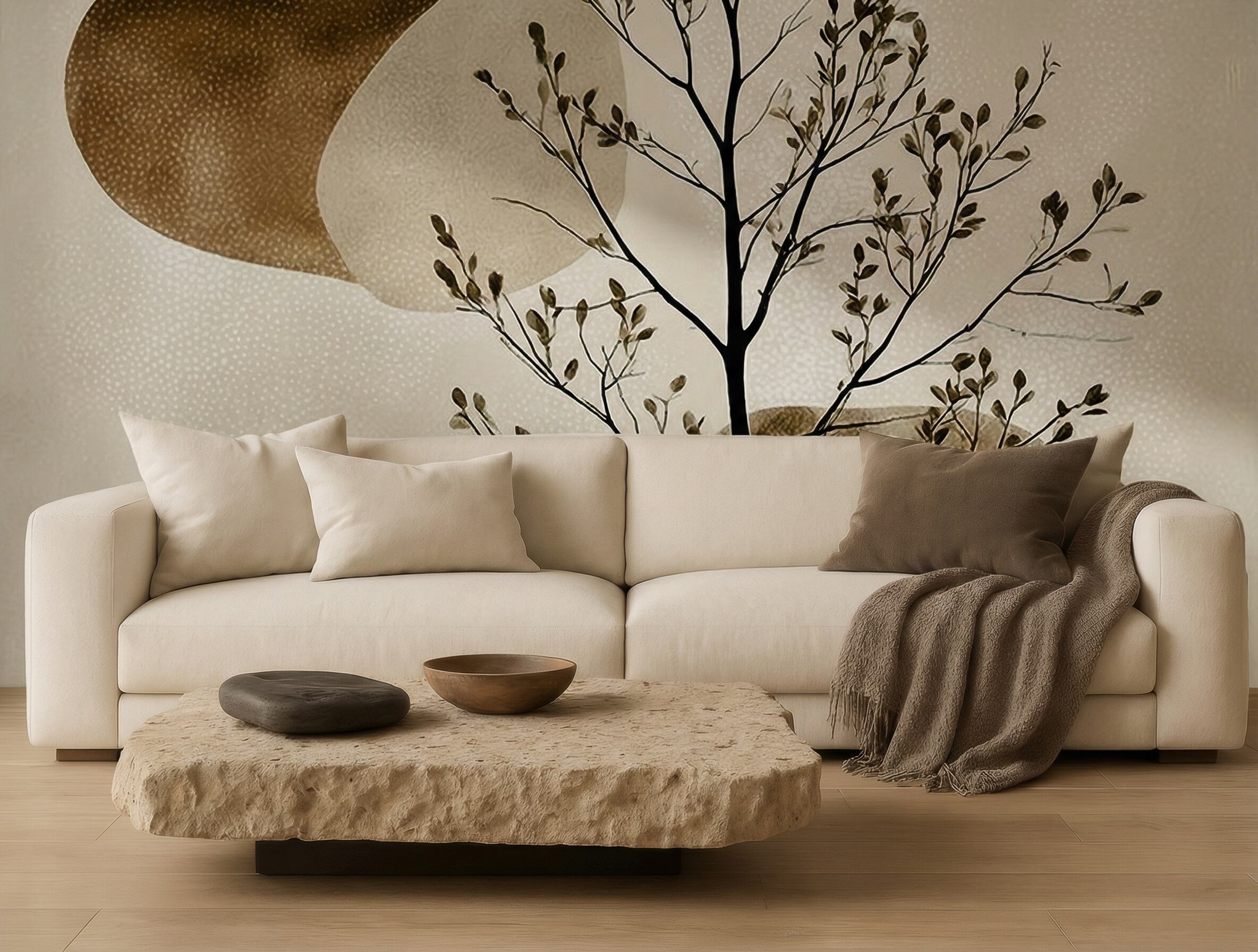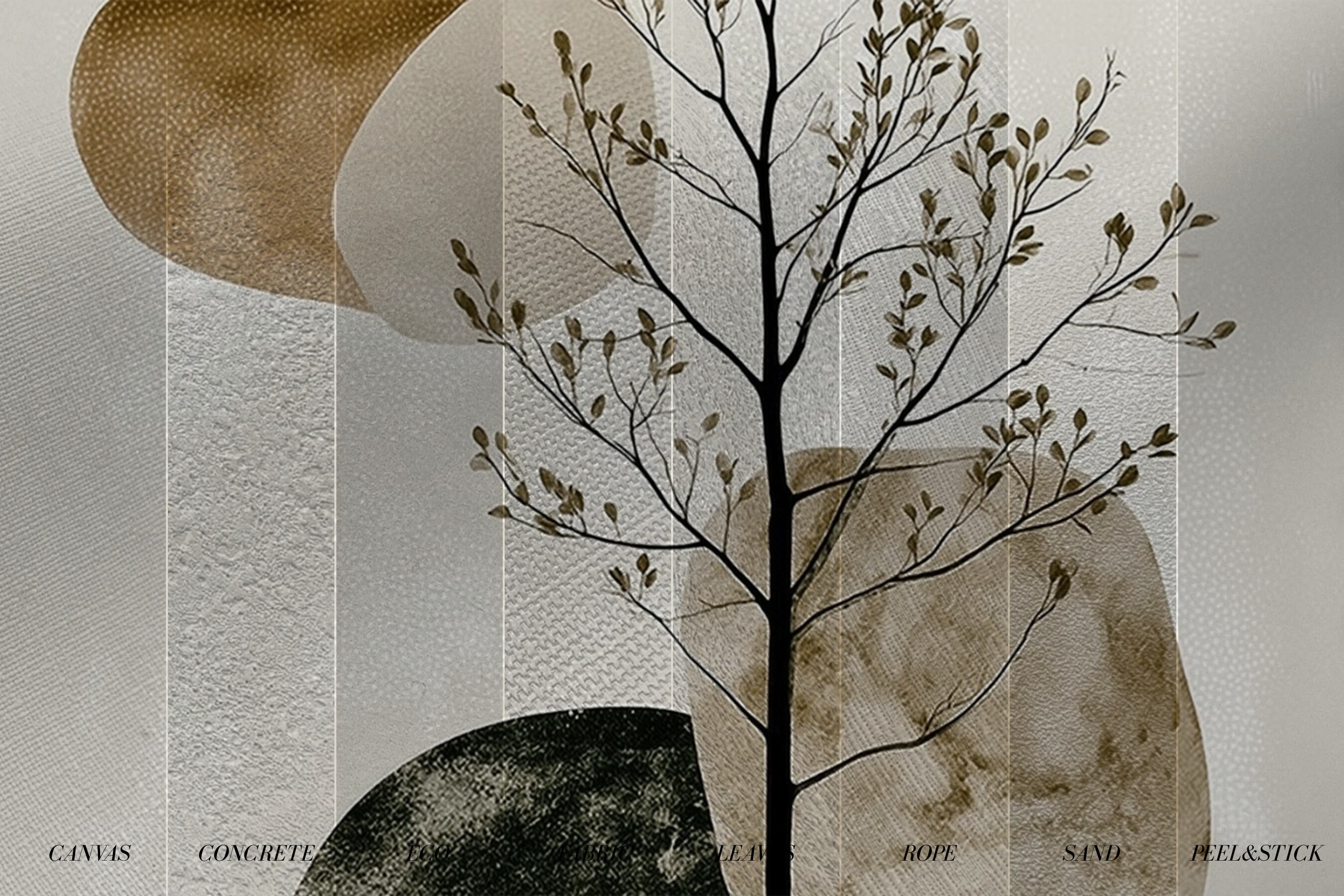 静(Shizuka)は、静寂の中に保たれたバランスを表現した、落ち着きと芯のある印象の壁紙です。細く伸びる一本の木が静かな縦のラインを描き、そのまわりをやわらかな有機的フォルムが穏やかに漂います。くすみのあるアーストーンと繊細な質感が整った安定感を生み出し、動きが止まるのではなく、静かに保たれているような感覚を演出します。空間に無言の構造美をもたらし、地に足のついた落ち着きと、中心の定まった佇まいを与える一枚です。