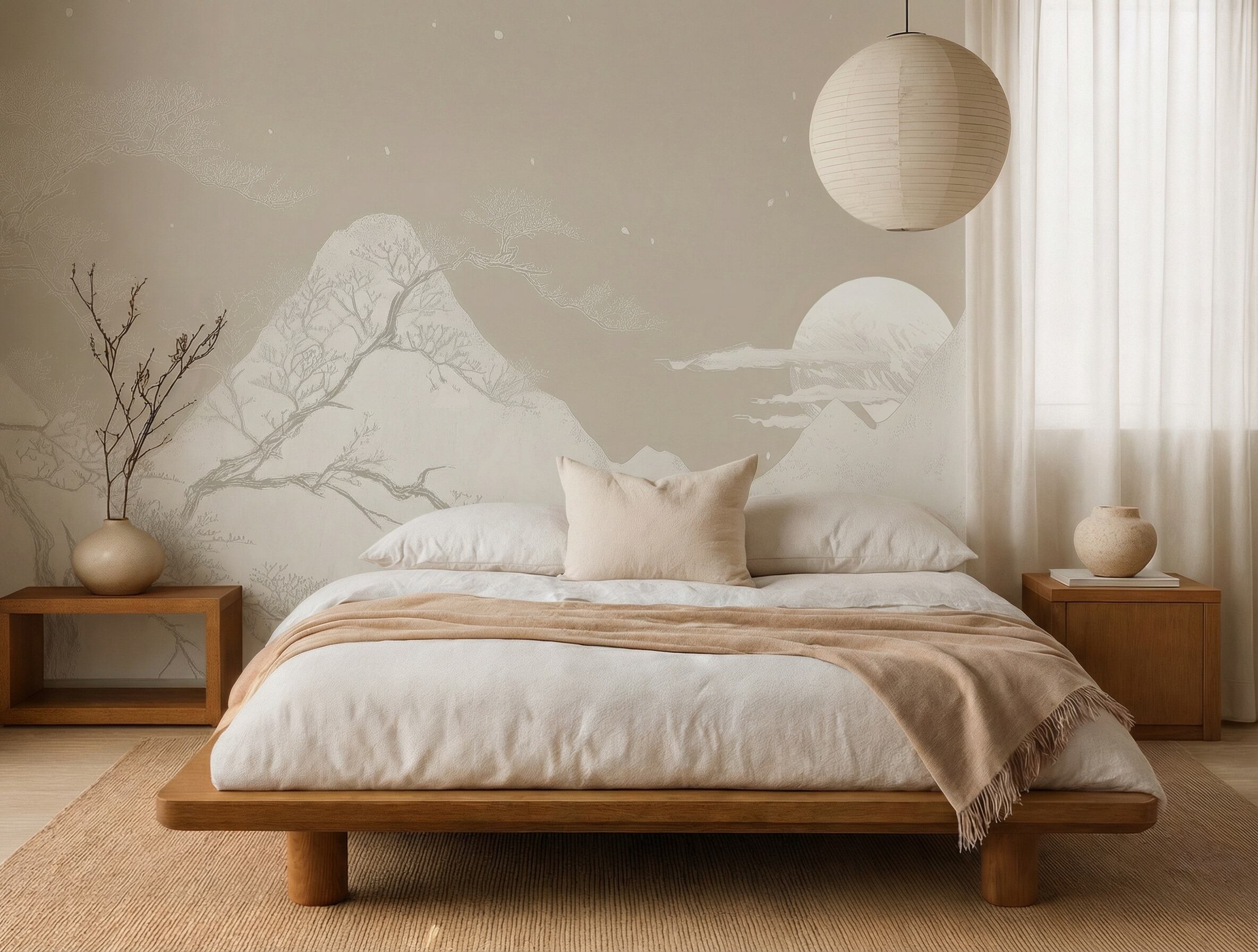月夜(Tsukiyo)は、月明かりに包まれた風景を描いた、静謐で余韻のある壁紙です。やわらかな山並みと枝を落とした木々が、淡く輝く月の下で静かに佇み、夜でありながら重たさを感じさせない穏やかな情景を生み出します。抑えた色調と繊細な線の重なりが、暗さではなく広がりのある静けさを表現し、空間に落ち着いた奥行きをもたらします。夜の平原に立つような、やさしく思索的で、時を超えて愛される一枚です。