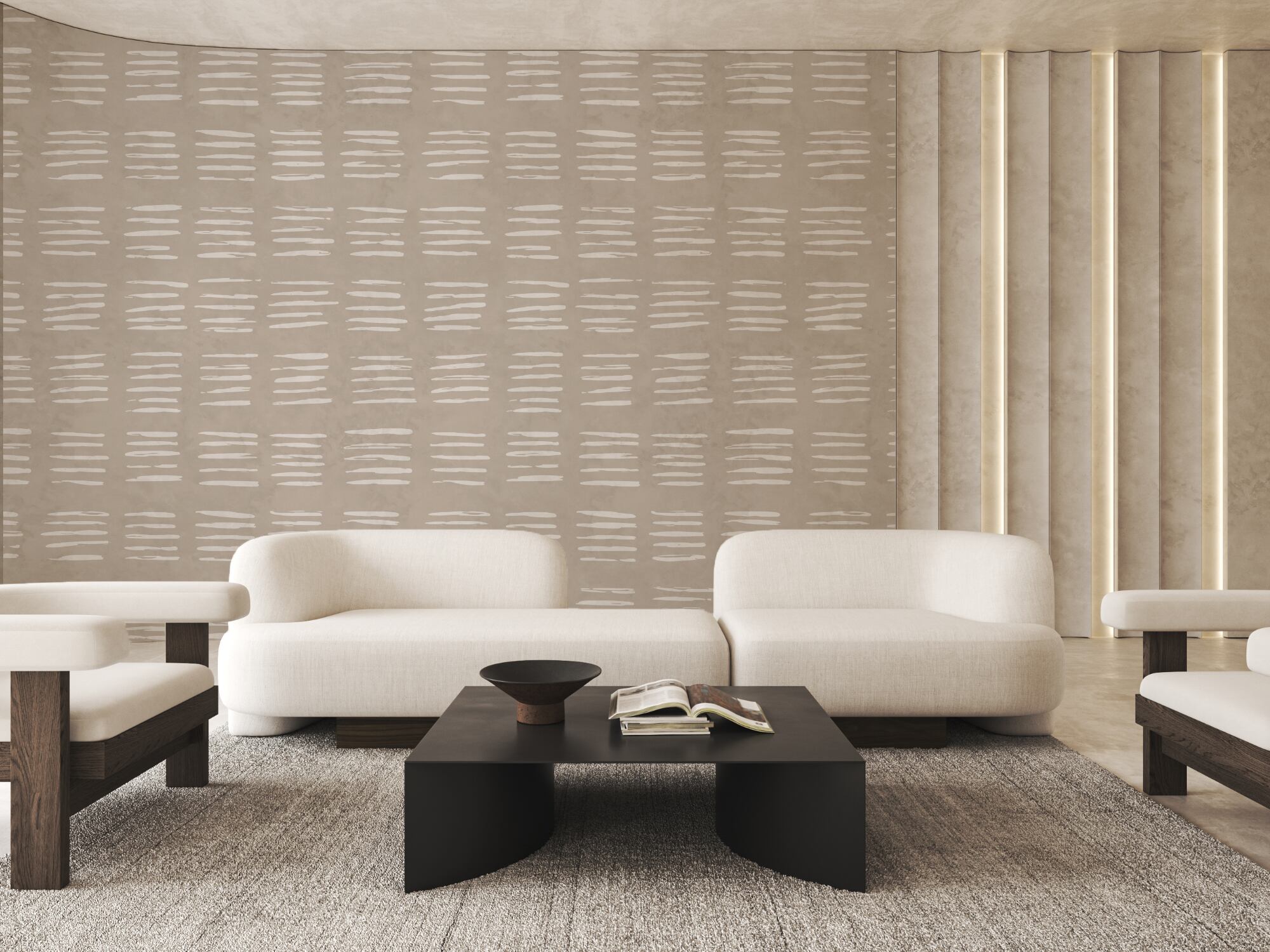 Serene Strokesは、繊細で流れるようなパターンが特徴です。自然の穏やかなリズムを感じさせる模様が、落ち着きと和みを壁全体にもたらし、ニュートラルな色調は、どんなお部屋にも洗練された印象を与えます。ジャパンディスタイル、ミニマリストスタイル、コンテンポラリースタイル、モダンスタイルなインテリアに最適です。この壁紙は、モダンなインテリアのすっきりとしたラインも、スカンジナビア風の居心地のよい温かみのある空間も、難なく引き立てます。