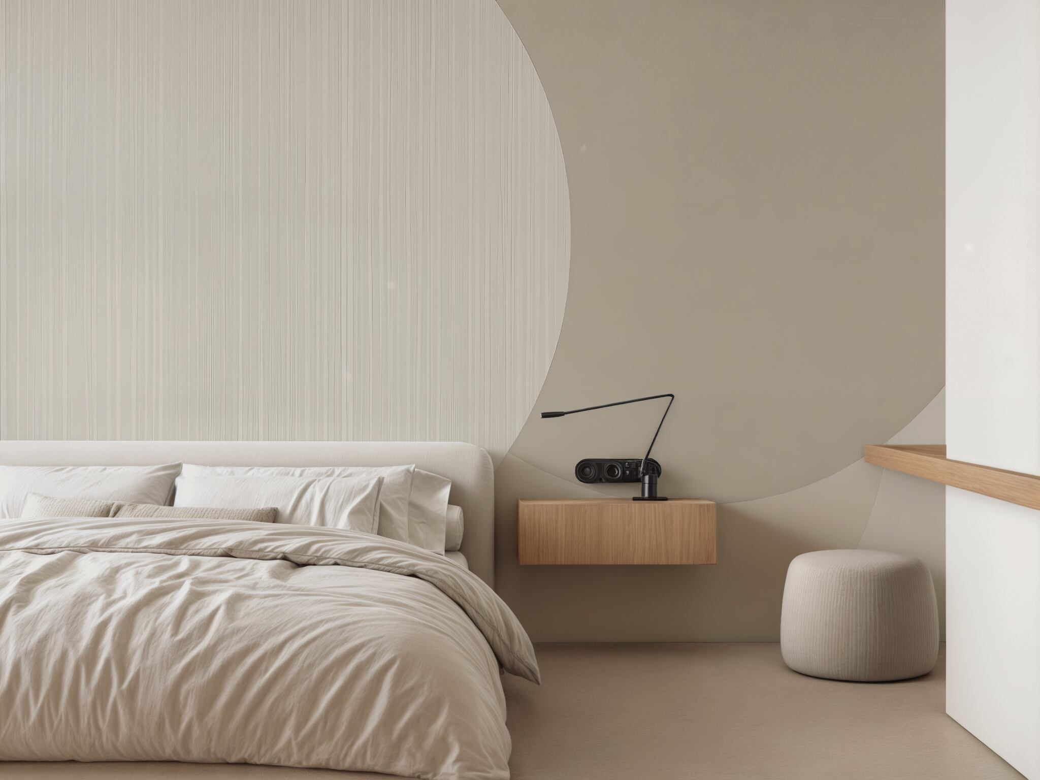 Kaori Driftは、洗練されたニュートラルパレットの中で、重なり合う円や曲線のフォルムを描いた魅惑的なデザインです。暖かみのある白、柔らかなグレー、穏やかなベージュのパレットを使ったデザインは、見る距離や照明条件によって、大胆なグラフィックから繊細なテクスチャーまで、驚くほど多彩に変化するデザインです。
