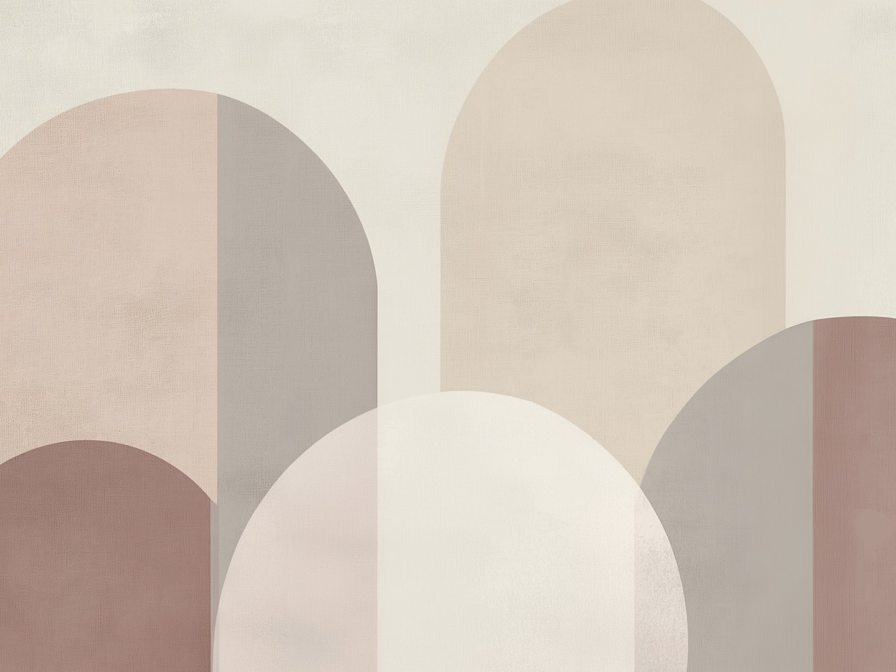 Tsubaki Vistaは、交差するアーチが一連に並び、曲線と影の魅力的な風景を作り出します。この構図は、スケールと重なりを巧みに操り、大小さまざまなアーチが現れては引っ込むことで、深さの錯覚を生み出し、平面的な壁を思索的なポータルへと変貌させます。温かみのあるマッシュルーム色、微妙なグレージュ、そして透明感のあるクリーム色が調和し、広がりと安定感を感じさせる立体的な空間を生み出しています。